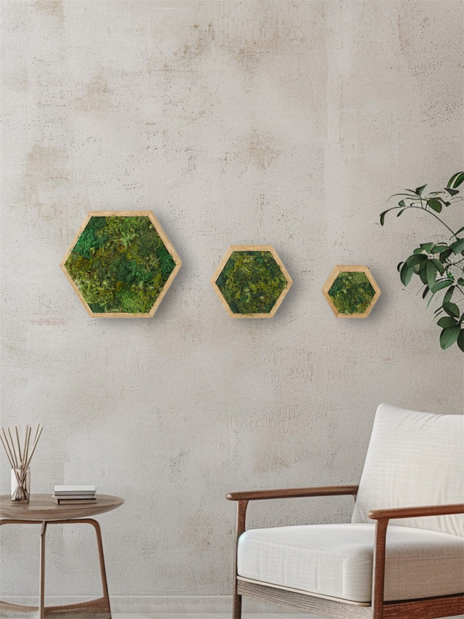 思っていた以上に上質。空間がぐっと締まりました。生きた苔のような繊細な風合いが素晴らしく、仕上がりからも高い品質を感じます。落ち着いた緑が空間に自然と馴染み、見るたびに癒されます。次は、より大きなサイズも飾ってみたくなりました。