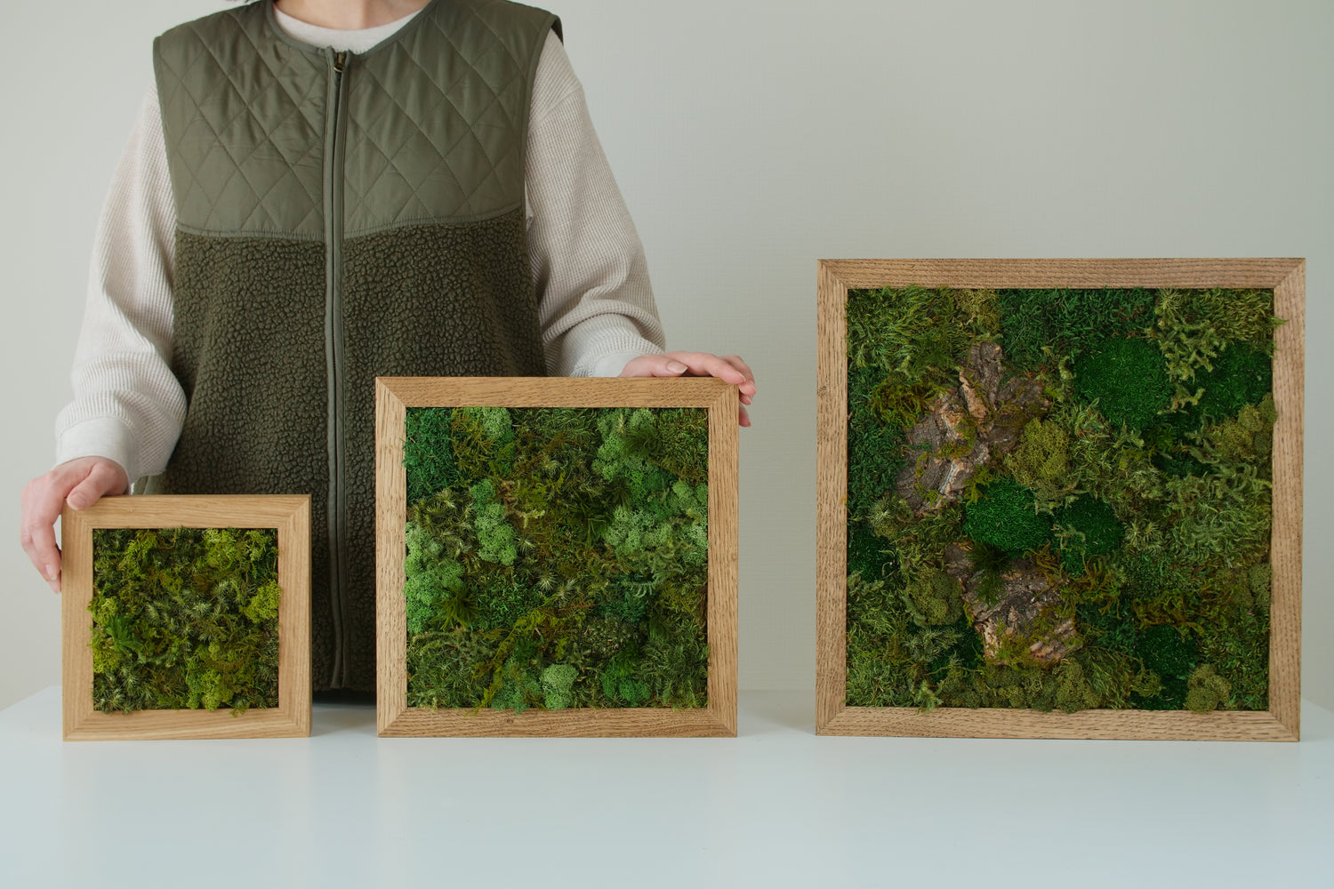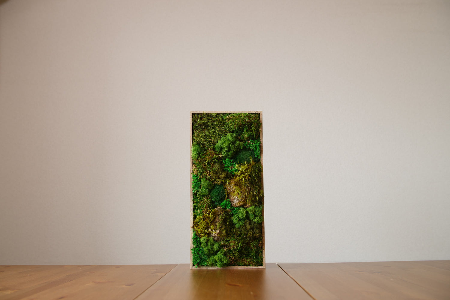 思っていた以上に上質。空間がぐっと締まりました。生きた苔のような繊細な風合いが素晴らしく、仕上がりからも高い品質を感じます。落ち着いた緑が空間に自然と馴染み、見るたびに癒されます。次は、より大きなサイズも飾ってみたくなりました。