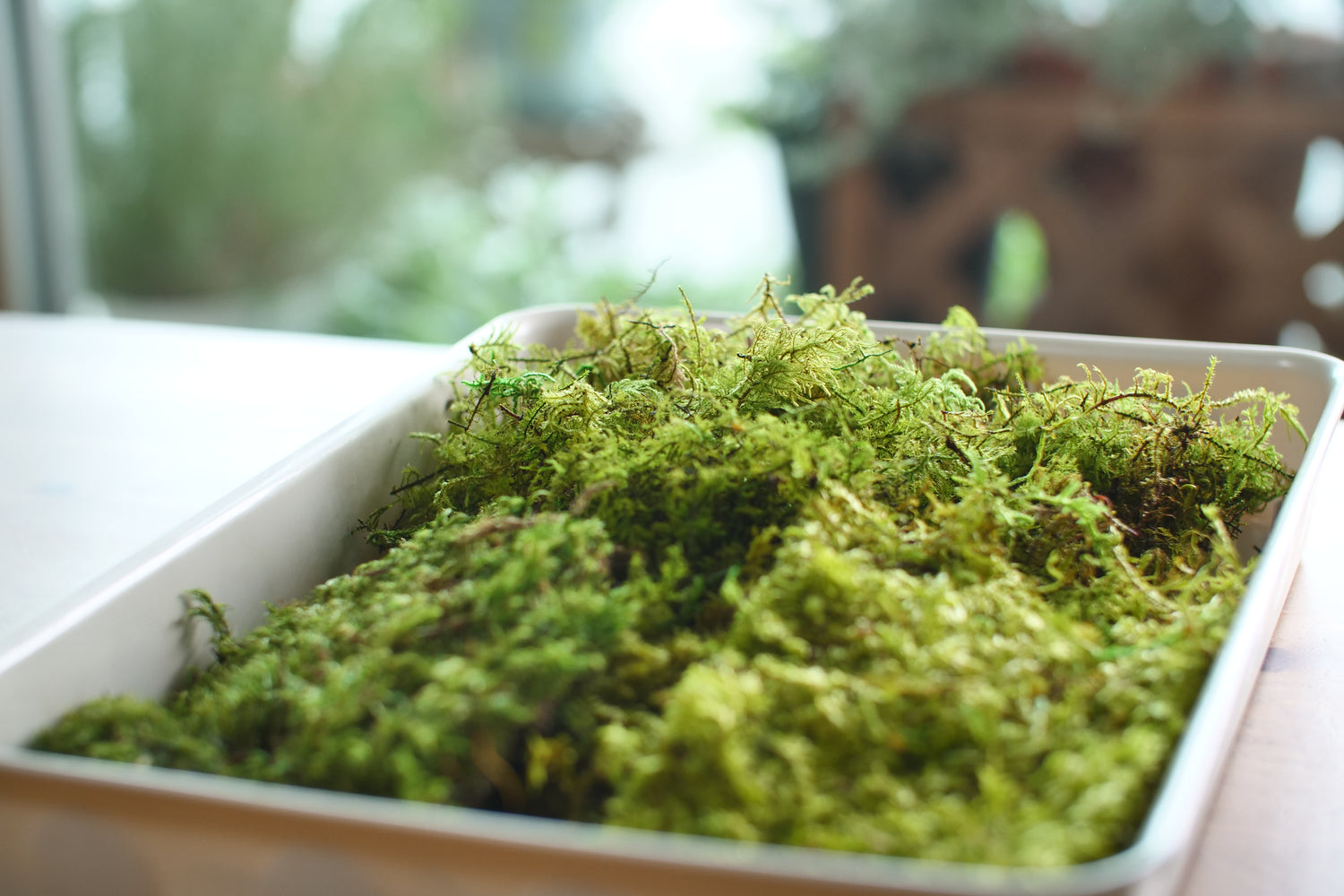 柔らかいハケやエアダスターで軽く払ってください。強くこすると苔が傷ついたり破損する可能性があるため、 やさしくお手入れいただくのがおすすめです。