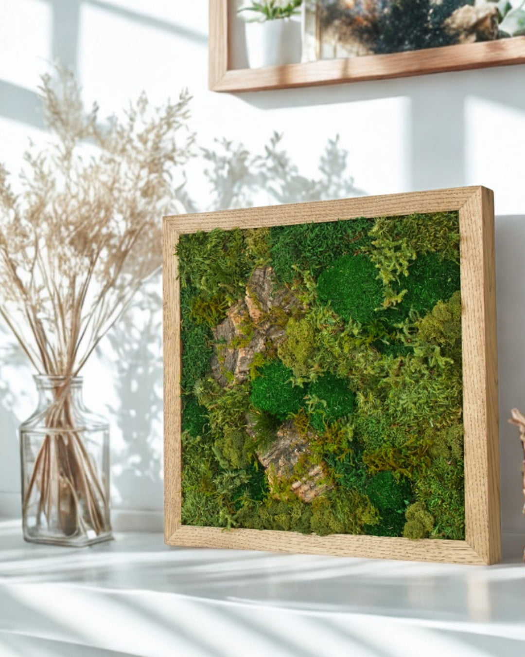 思っていた以上に上質。空間がぐっと締まりました。生きた苔のような繊細な風合いが素晴らしく、仕上がりからも高い品質を感じます。落ち着いた緑が空間に自然と馴染み、見るたびに癒されます。次は、より大きなサイズも飾ってみたくなりました。